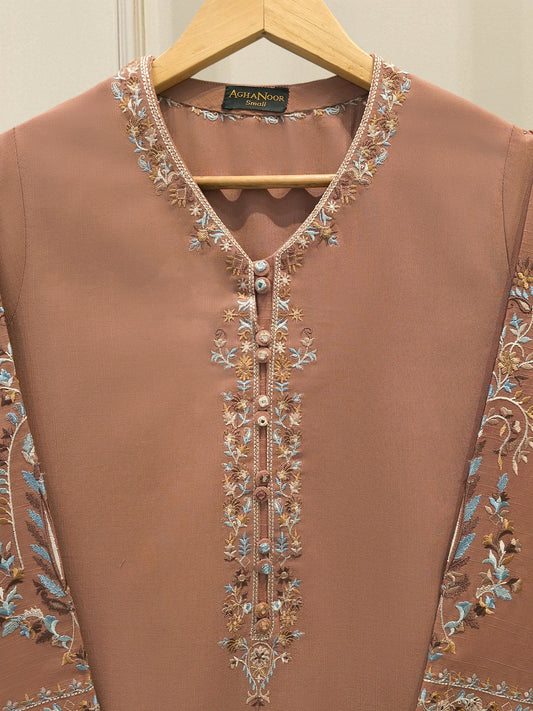 S112788 | Pure Khaddi Silk Embroidered Suit | Aghanoor Bridal