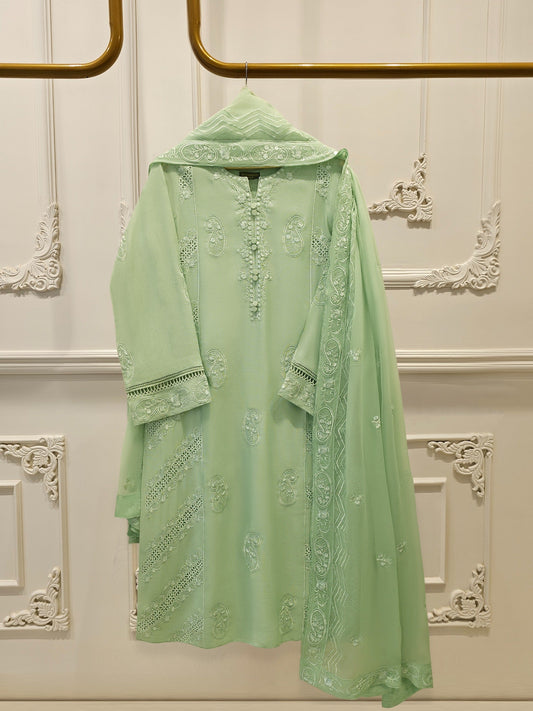 S112808 | Pure Embroidered Cotton Net Suit | Aghanoor Bridal