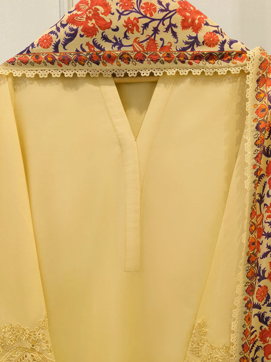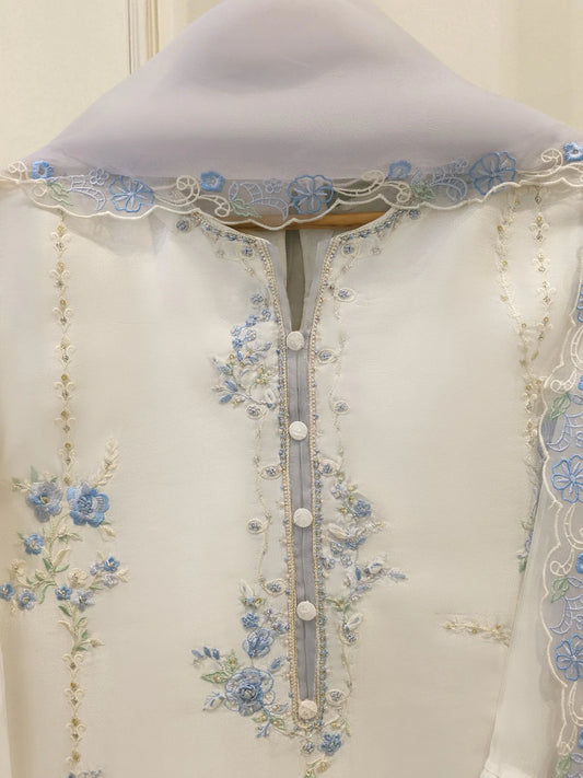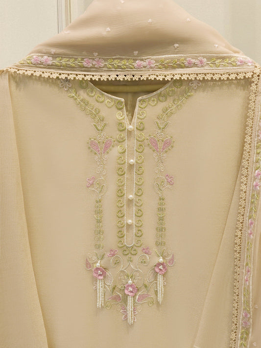 3 Piece - Pure Embroidered Cotton Net Suit S113844 | Aghanoor Bridal