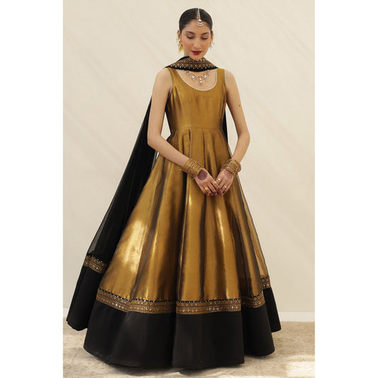 GOLDEN BROWN VELVET EMBELLISHED KAAFTAN | SAK ATELIER