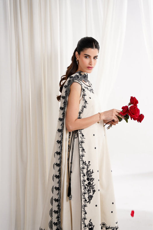 IVORY & BLACK LUXURY EMBROIDERED 3PCS SET NPA3-25422 (EID 2025 READY TO WEAR) | Zaib (RTS)