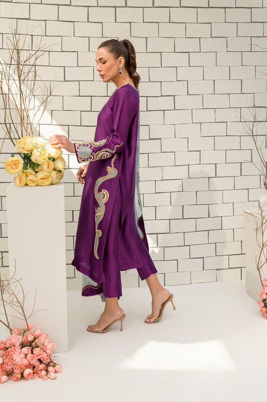 PLUM | LUXURY EMBROIDERED KARANDI | (NPA3-25448) | ZAIB