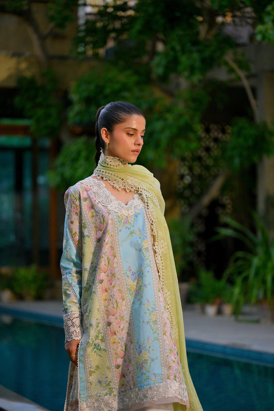 WHISPERS OF SUMMER / PISTACHIO LUXURY PRINTED EMBROIDERED LAWN SET (NEL-25620) | ZAIB (RTS)