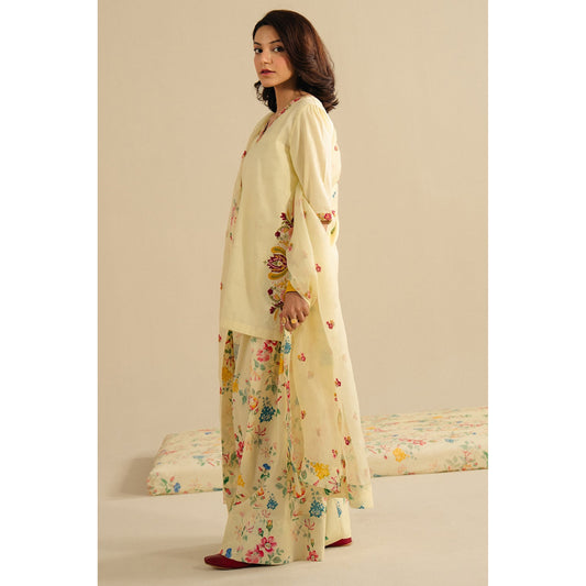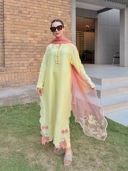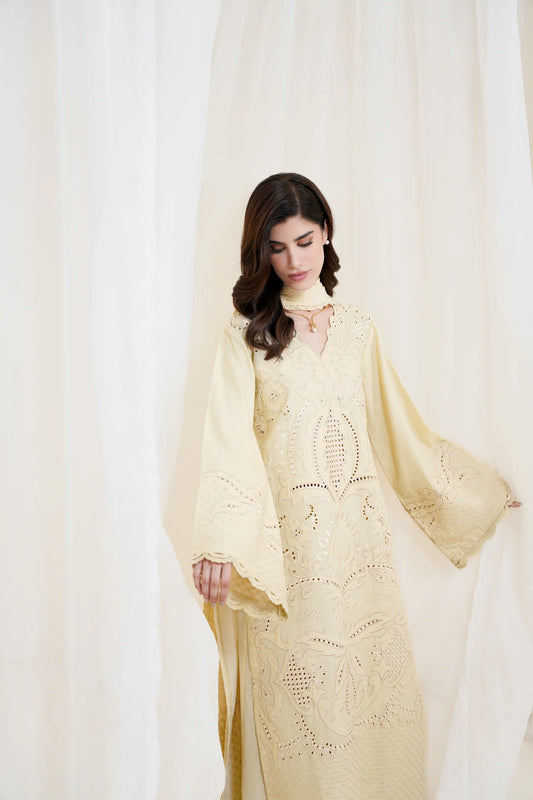BUTTER YELLOW LUXURY EMBROIDERED 3PCS SET NPA3-25420 (EID 2025 READY TO WEAR) | ZAIB