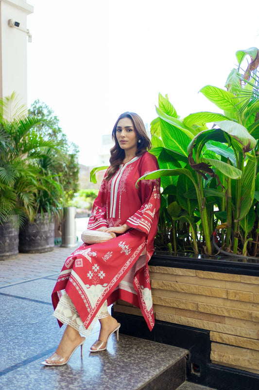 DINARA SCARLETT EMBROIDERED SHIRT AND DUPATTA | FARAH TALIB AZIZ