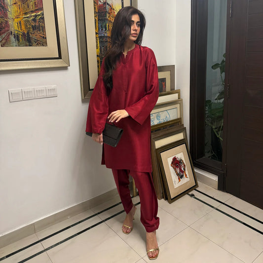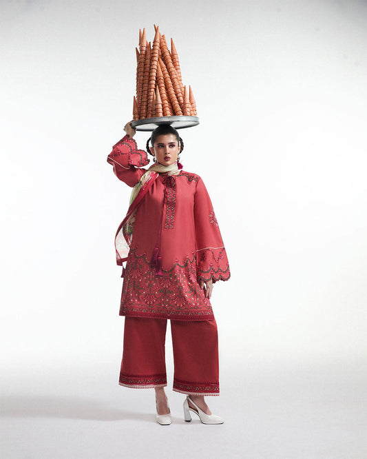 DORI DEEP RED LUXURY EMBROIDERED KARANDI SET (NEL-25629) | ZAIB