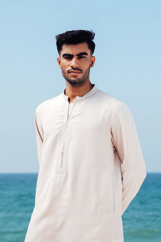 'Light Peach' Embroidered Kurta Pajama | REPUBLIC MENSWEAR