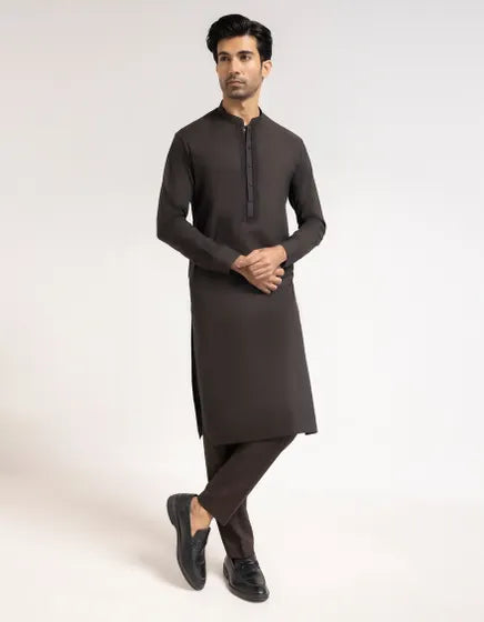 COFFEE BROWN COTTON SEMI-FORMAL KURTA TROUSERS | FESTIVE '26 | JUNAID JAMSHED MENSWEAR