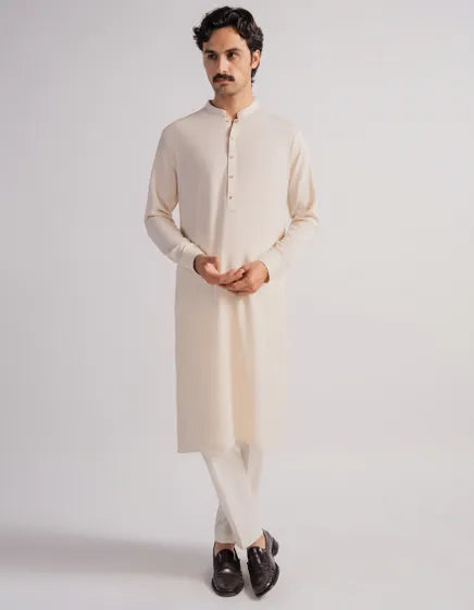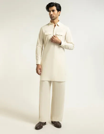 CREAM CASUAL KURTA TROUSERS | FESTIVE '26 | JUNAID JAMSHED MENSWEAR