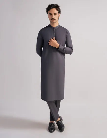 DEEP GREY CASUAL KURTA TROUSERS | FESTIVE '26 | JUNAID JAMSHED MENSWEAR