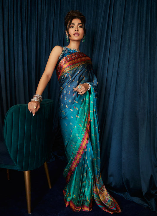 Julia Charmeuse Printed Saree | Velvet | FARAH TALIB AZIZ