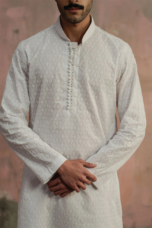 White Chikan-kari Kurta Pajama | REPUBLIC MENSWEAR