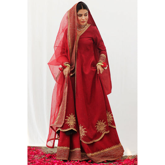 RED OPEN CUT ANARKALI OUTFIT | DYOT