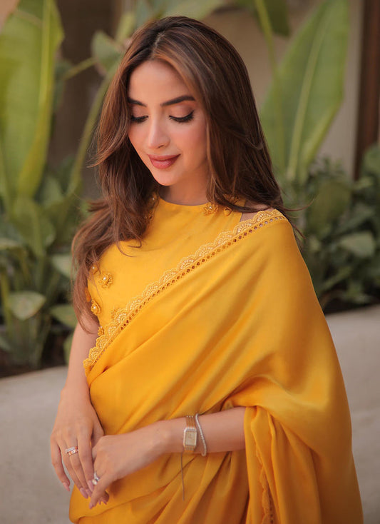 SABOOR ALY IN CANARY YELLOW SAREE | PRET | FARAH TALIB AZIZ
