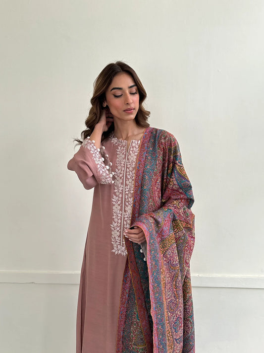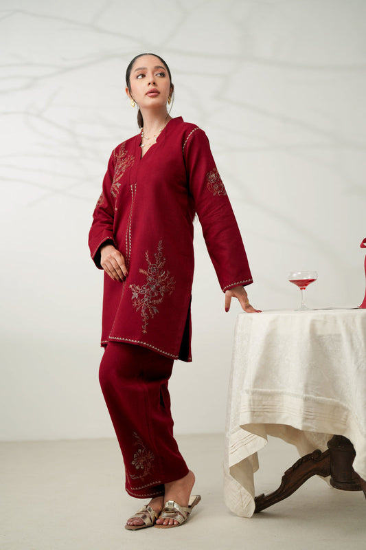 DEEP RED LUXURY EMBROIDERED FALL SET (NPA2-24315) | ZAIB