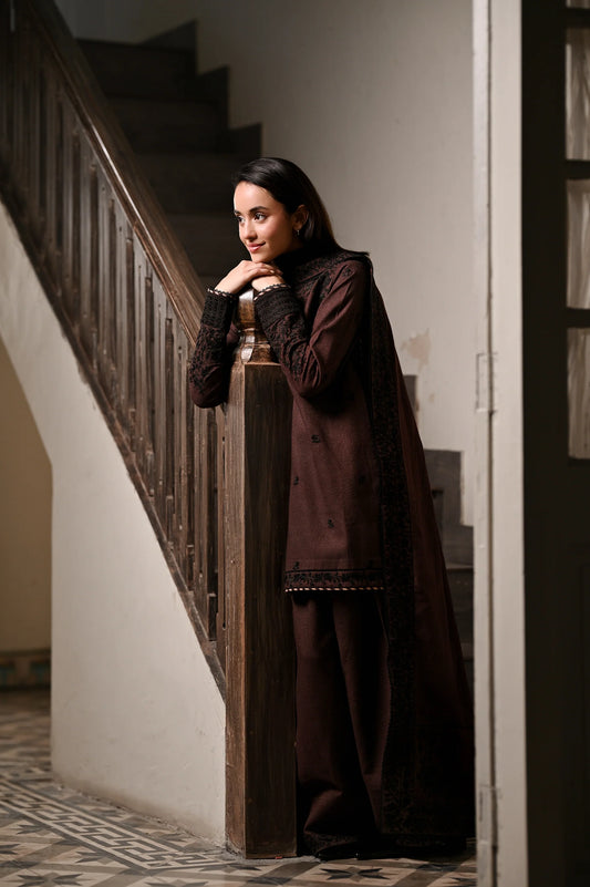 CHOCOLATE BROWN | LUXURY EMBROIDERED KARANDI | (NPA3-25441) | ZAIB