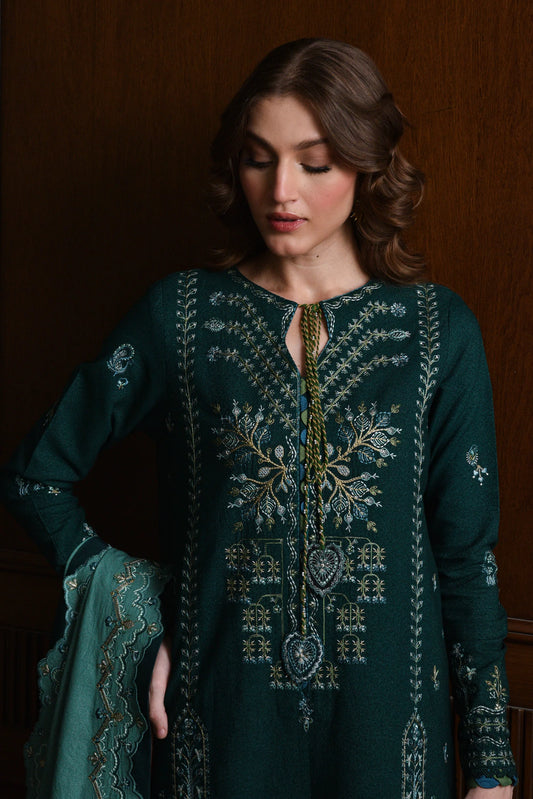 EMERALD GREEN LUXURY EMBROIDERED KARANDI SET (NEL-25623) | ZAIB