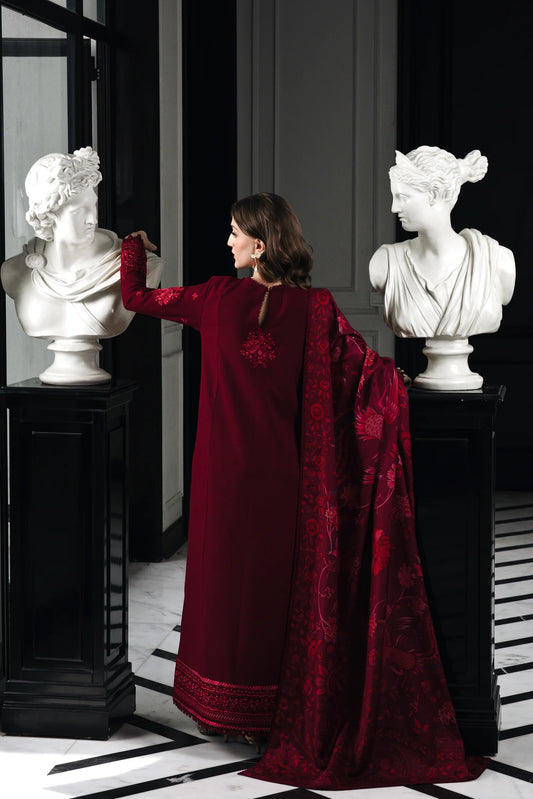 MAROON LUXURY EMBROIDERED KARANDI SET (NEL-25622) | ZAIB