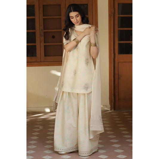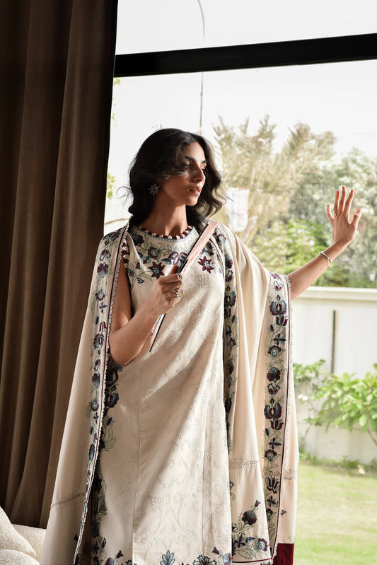 IVORY LUXURY EMBROIDERED KARANDI SET (NEL-25626) | ZAIB