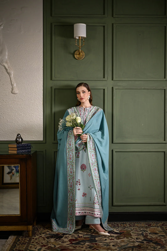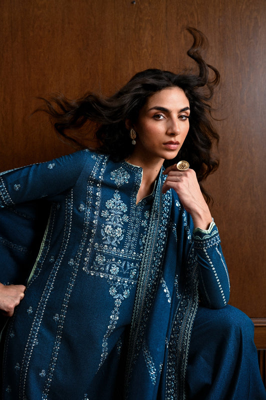 ICE BLUE LUXURY EMBROIDERED KARANDI SET (NEL-25634) | ZAIB