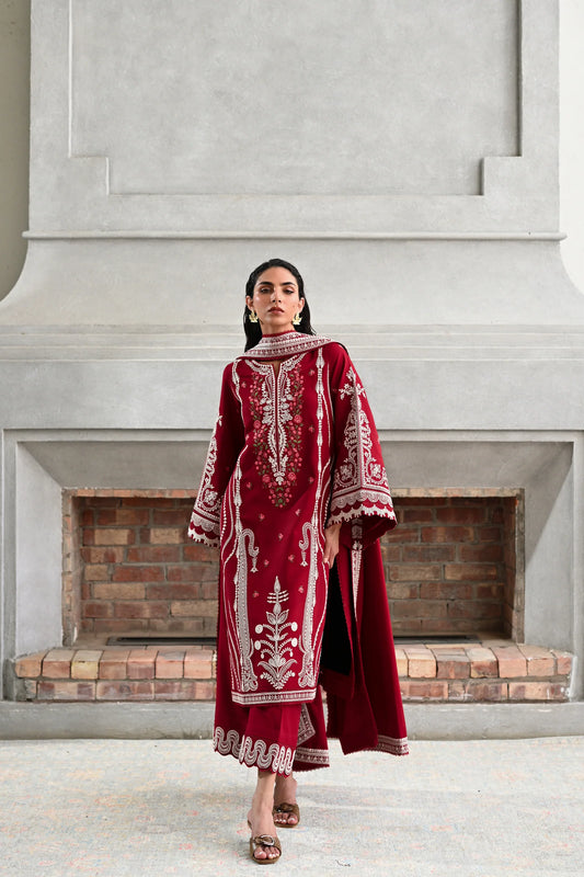 DORI DEEP RED LUXURY EMBROIDERED KARANDI SET (NEL-25629) | ZAIB
