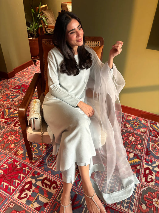 Muted Grey-Blue Buttoned Set | Sak Atelier