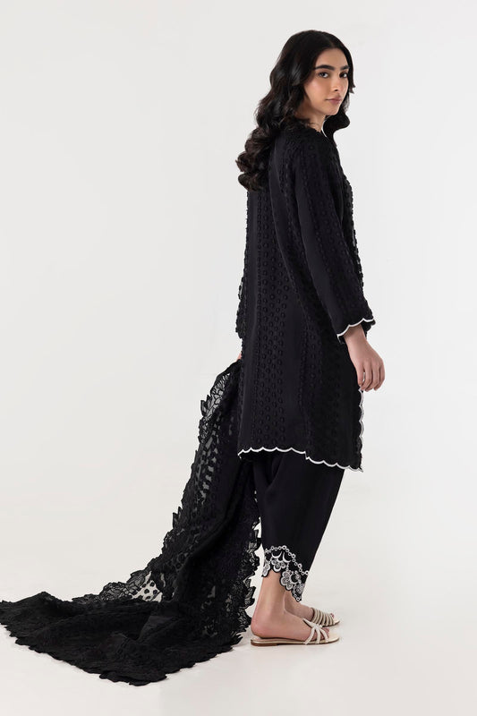 STITCHED BLACK EMBROIDERED SHIRT + SHALWAR + DUPATTA SS25SGE305P3 | Sana Safinaz