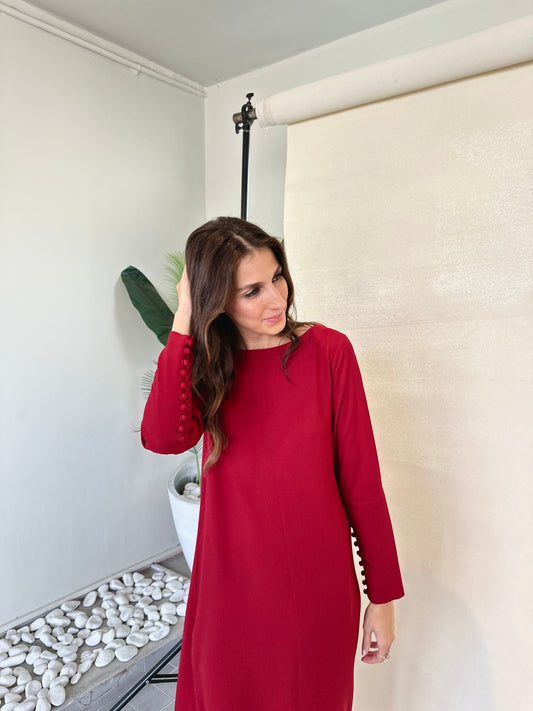 Red Buttoned Set | Sak Atelier