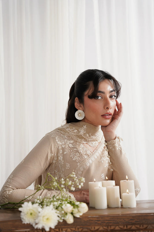 SAND BEIGE LUXURY EMBROIDERED 3PCS SET NPA3-25419 (EID 2025 READY TO WEAR) | ZAIB