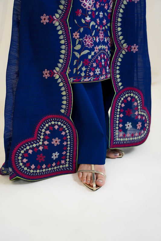 ROYAL BLUE LUXURY EMBROIDERED 3PCS SET NPA3-25424 (EID 2025 READY TO WEAR) | ZAIB