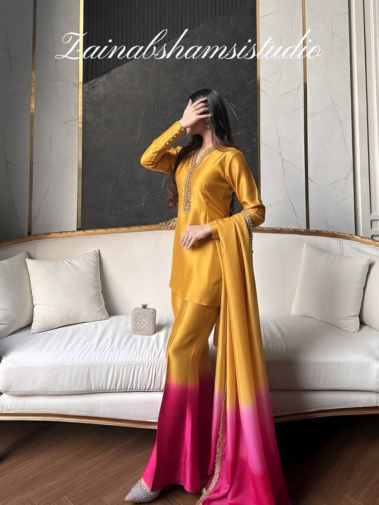 The Elysia Set in Mustard and Pink | Zainab Shamsi Studio