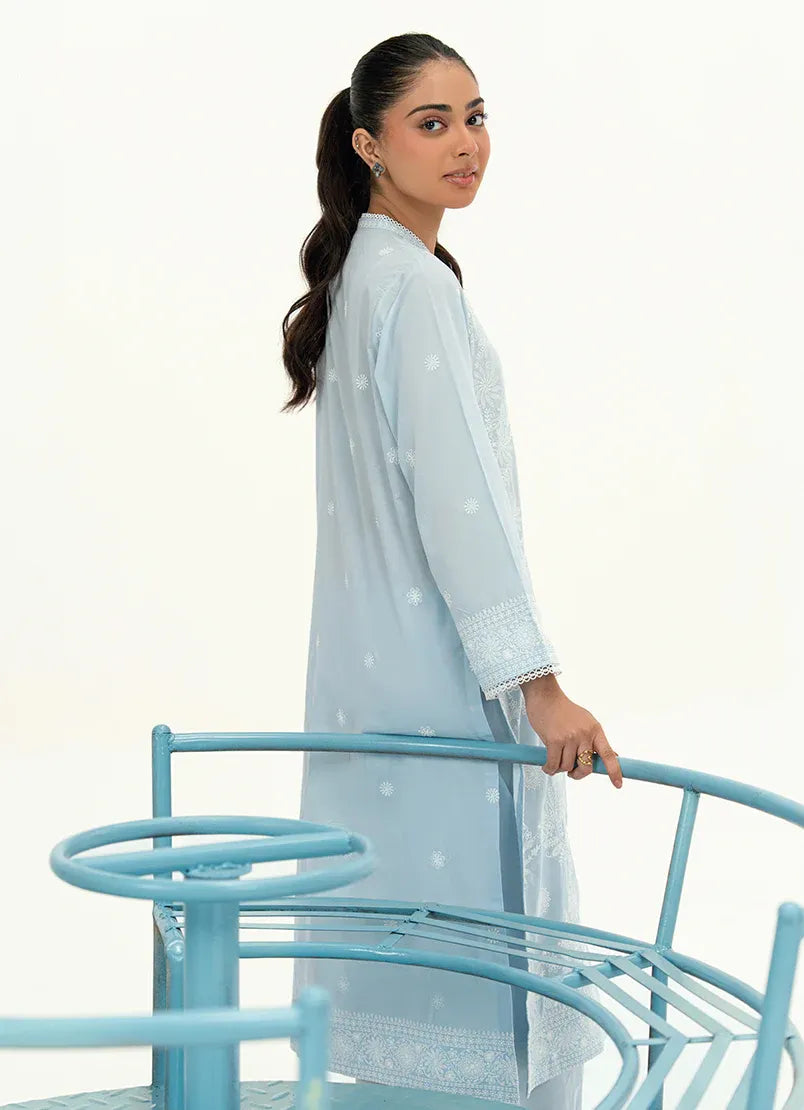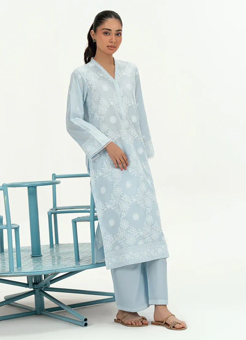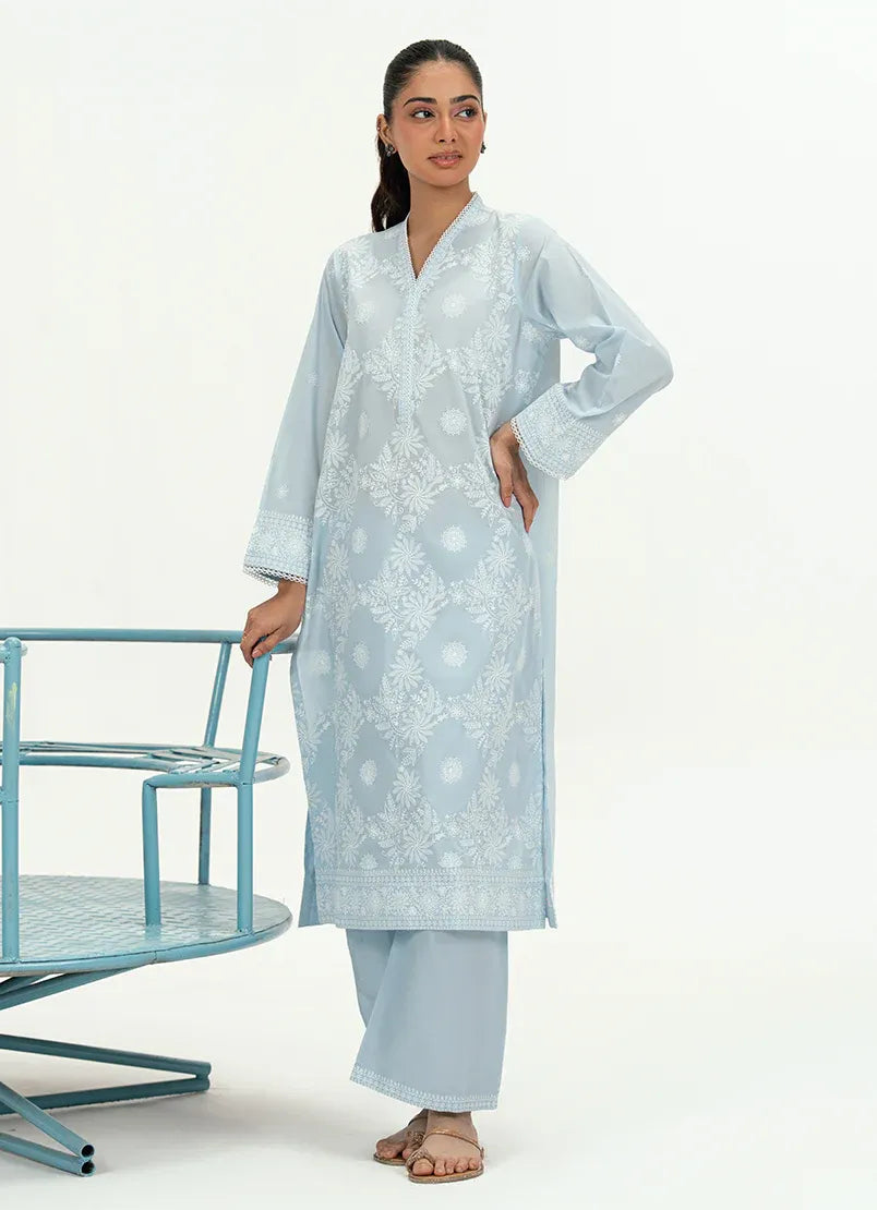 This blue embroidered co-ord set is crafted from breathable cotton, offering a crisp yet relaxed silhouette for everyday comfort. The kurta features all-over embroidery across the front, creating a softly textured surface, while the sleeves are finished with coordinated embroidered detailing. Paired with matching straight trousers, the set feels clean, balanced, and effortlessly refined. It is perfect for easy daywear with a signature finish.