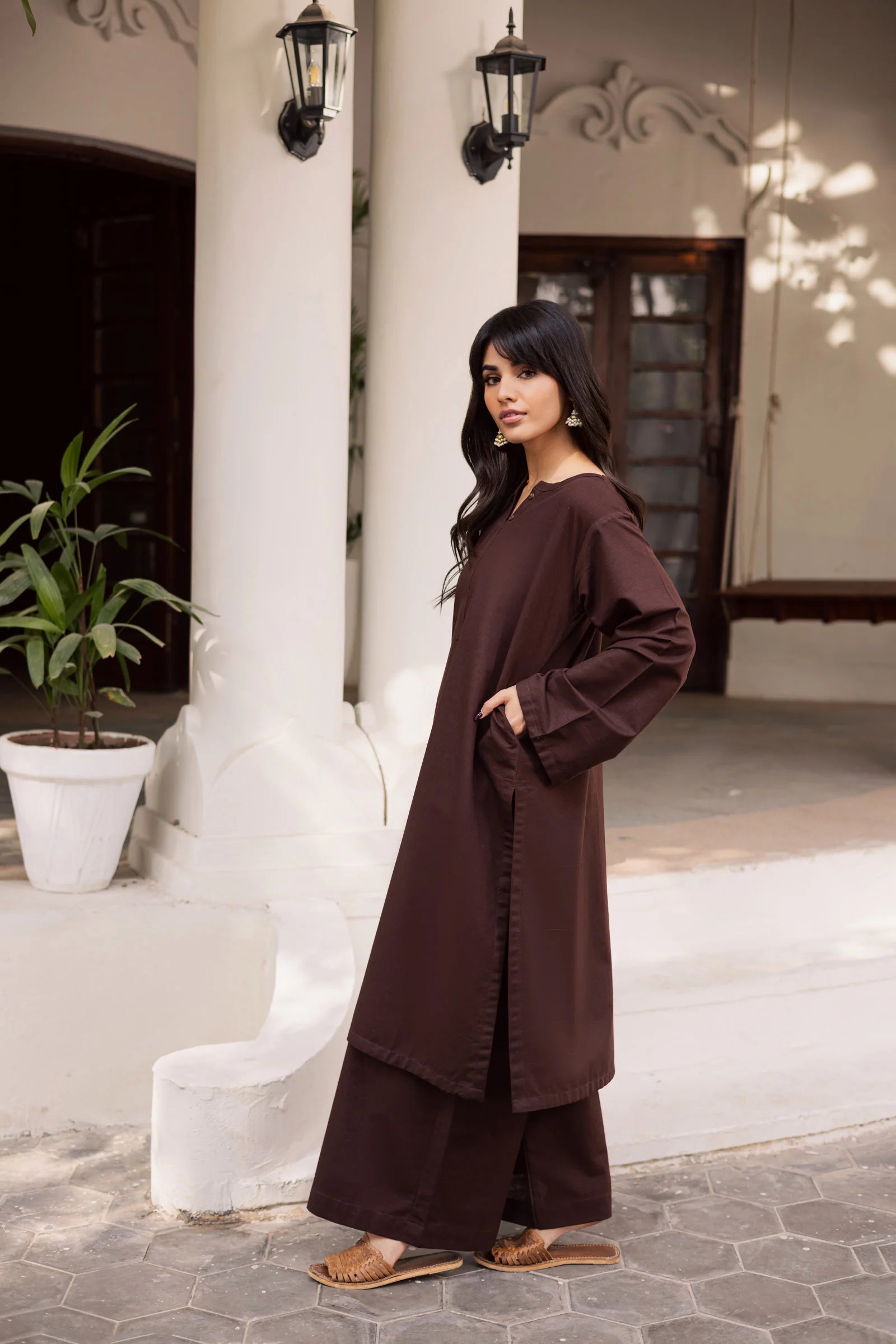 2 PC Khaddar Solid PSK 01 - Dark Brown | Winter Solids | Silayi Pret