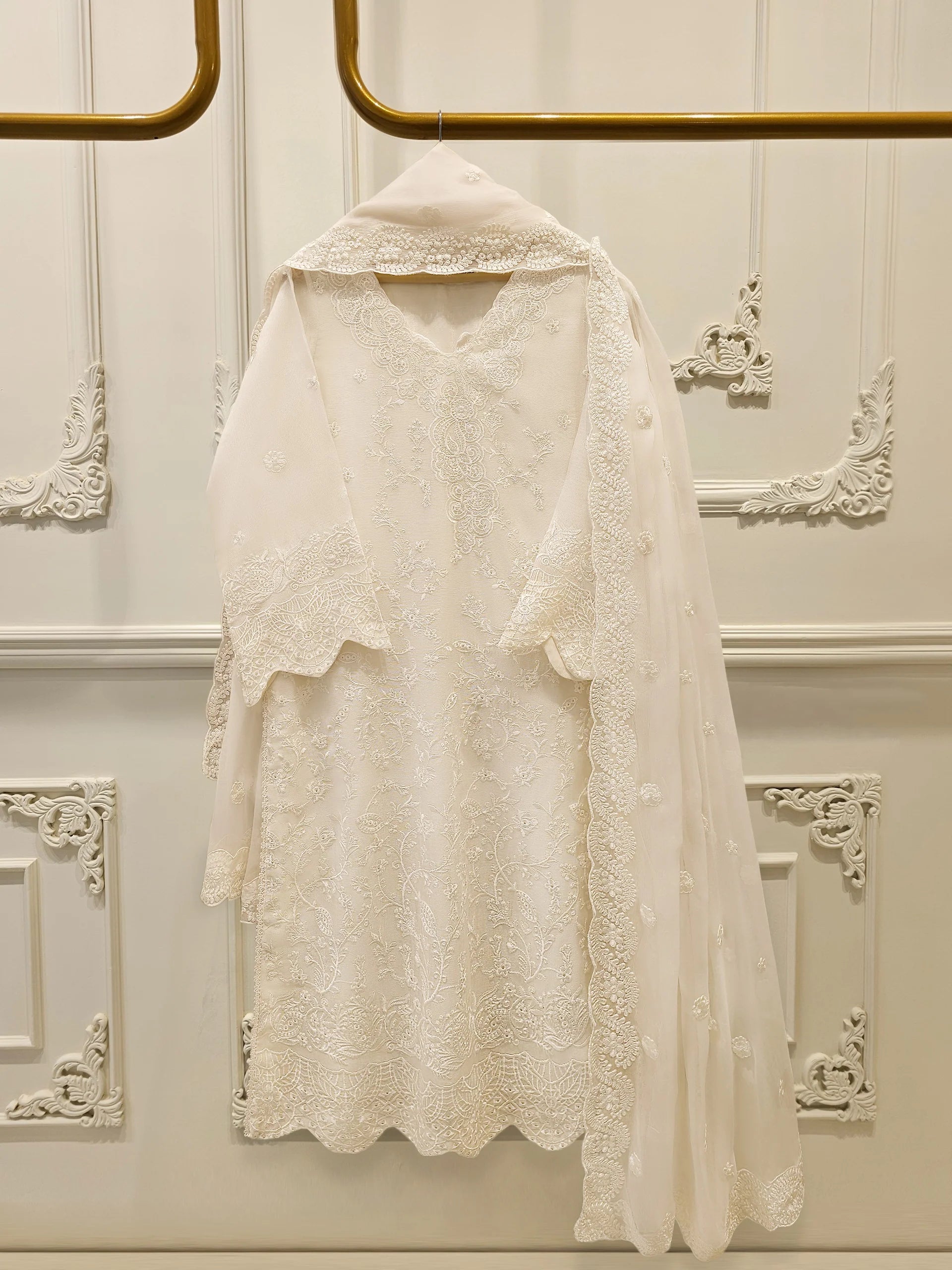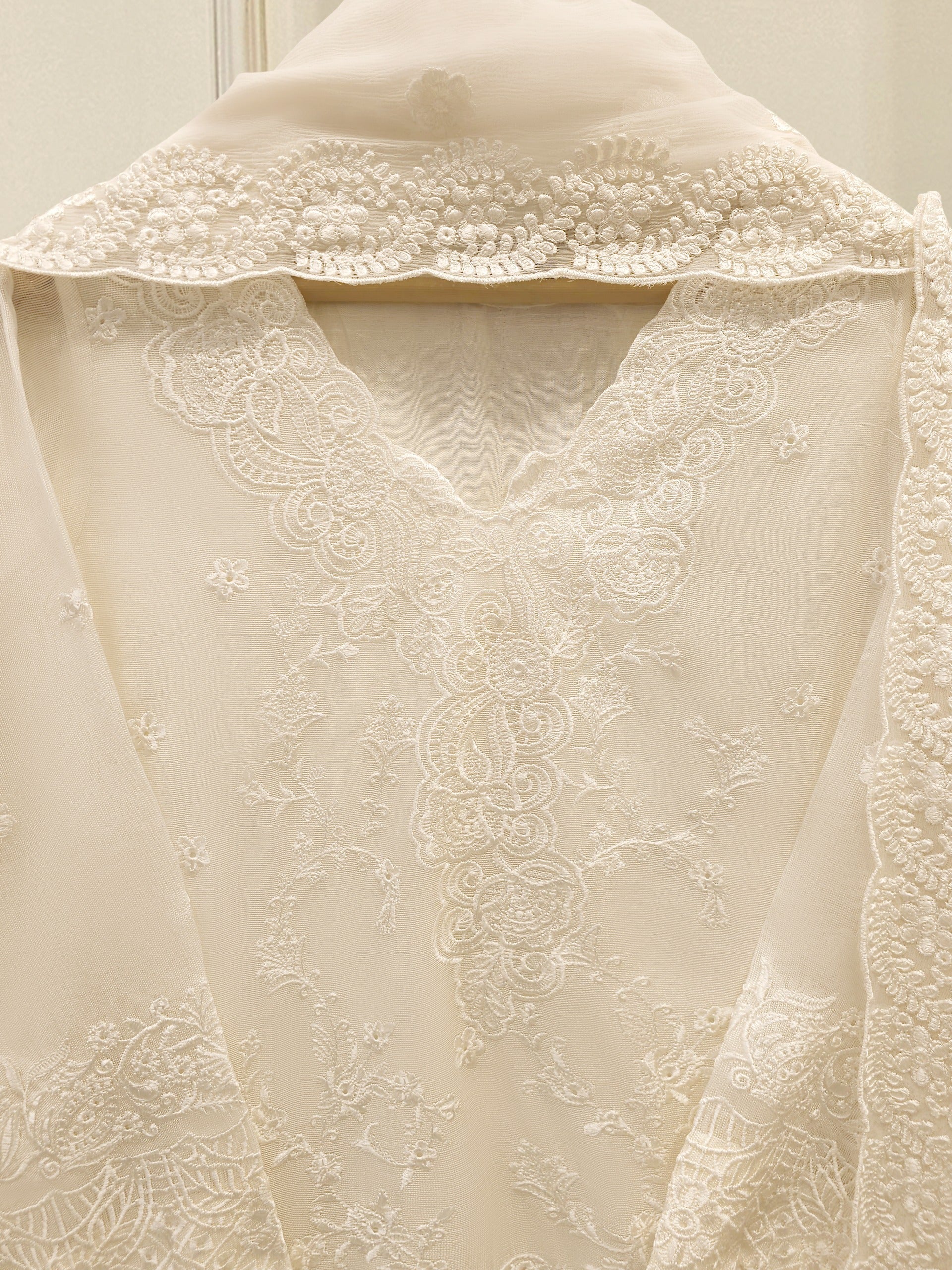 3 Piece - Pure Embroidered Cotton Net Suit S113799 | Aghanoor Bridal