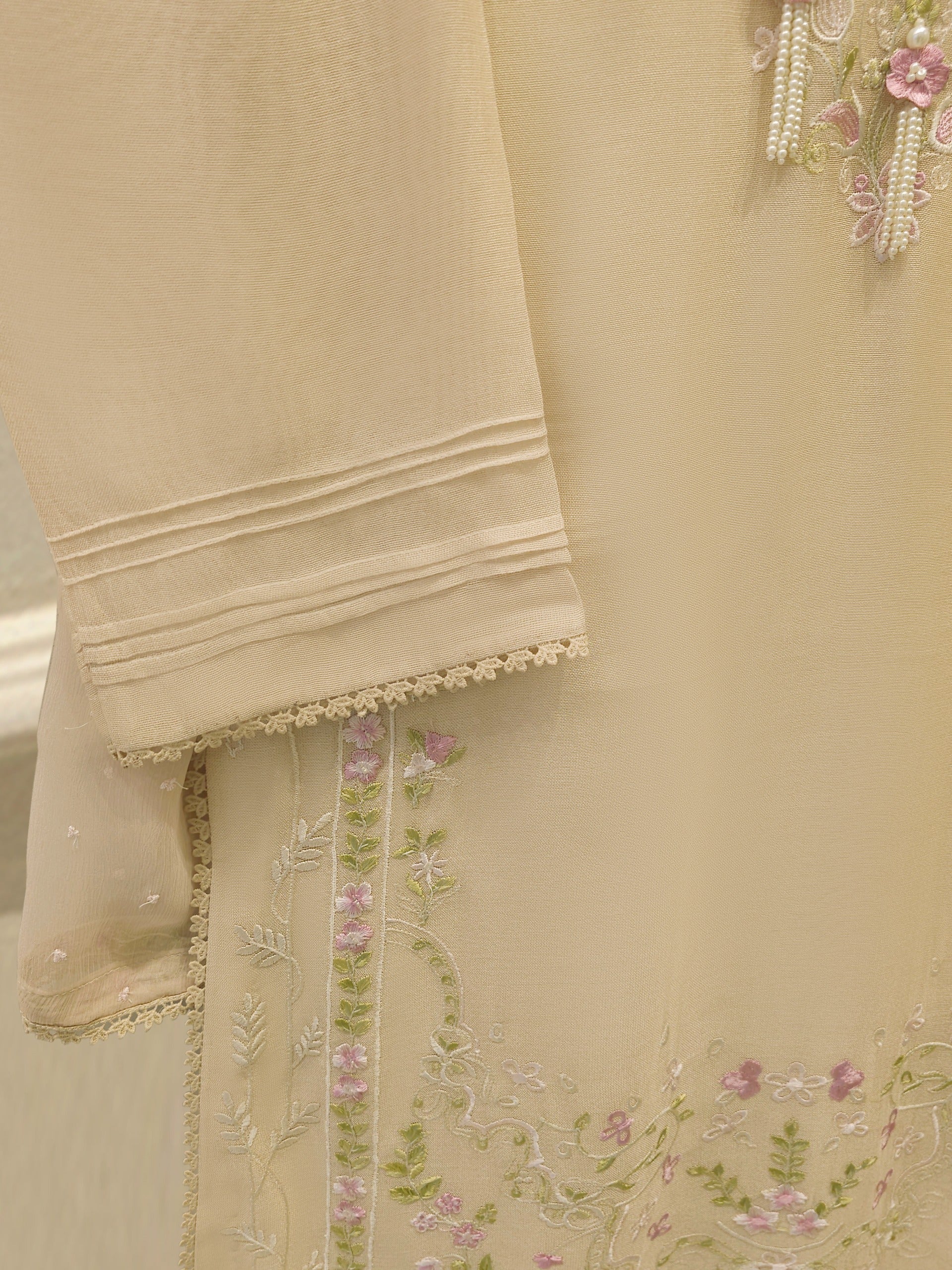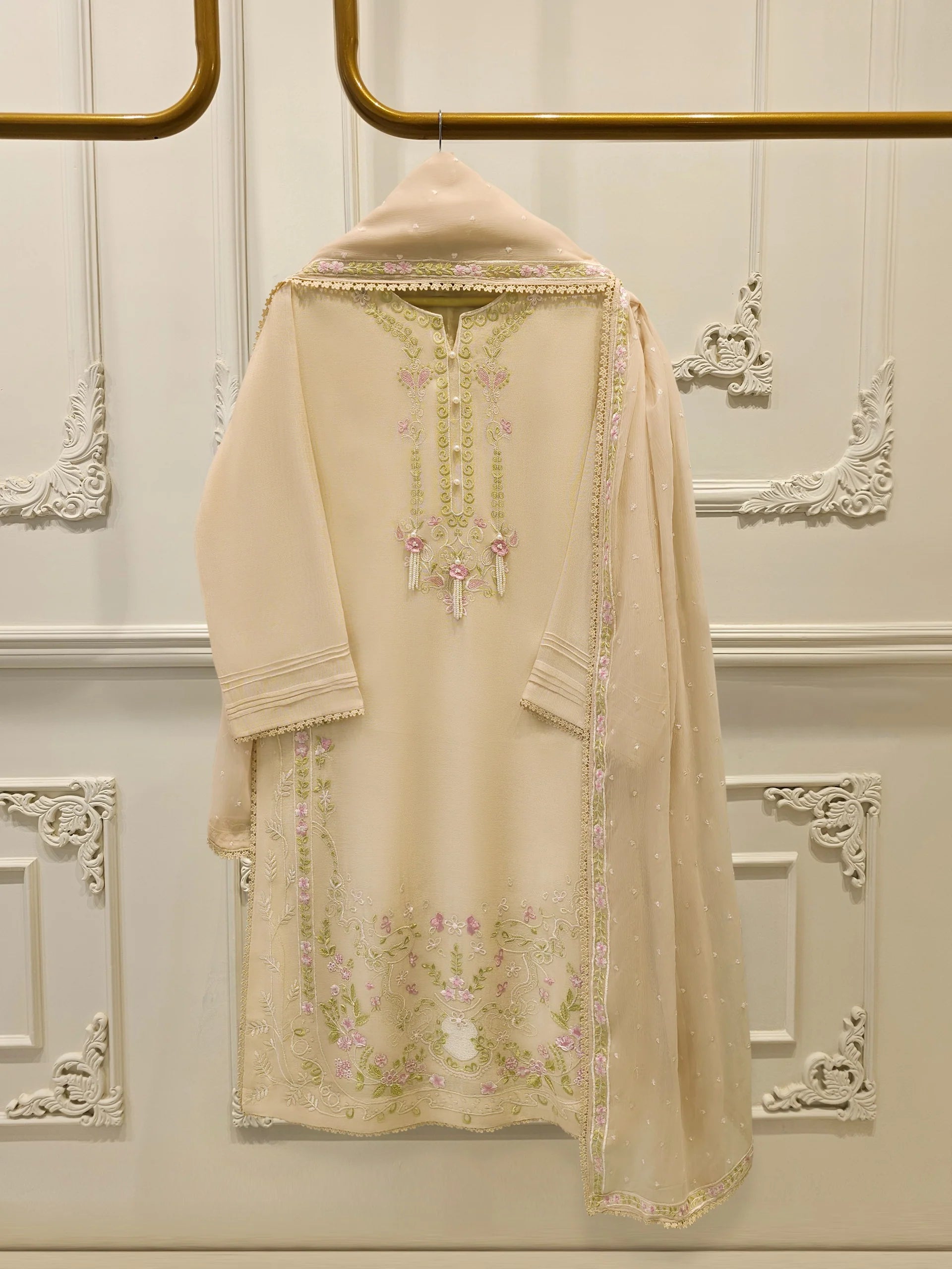3 Piece - Pure Embroidered Cotton Net Suit S113844 | Aghanoor Bridal