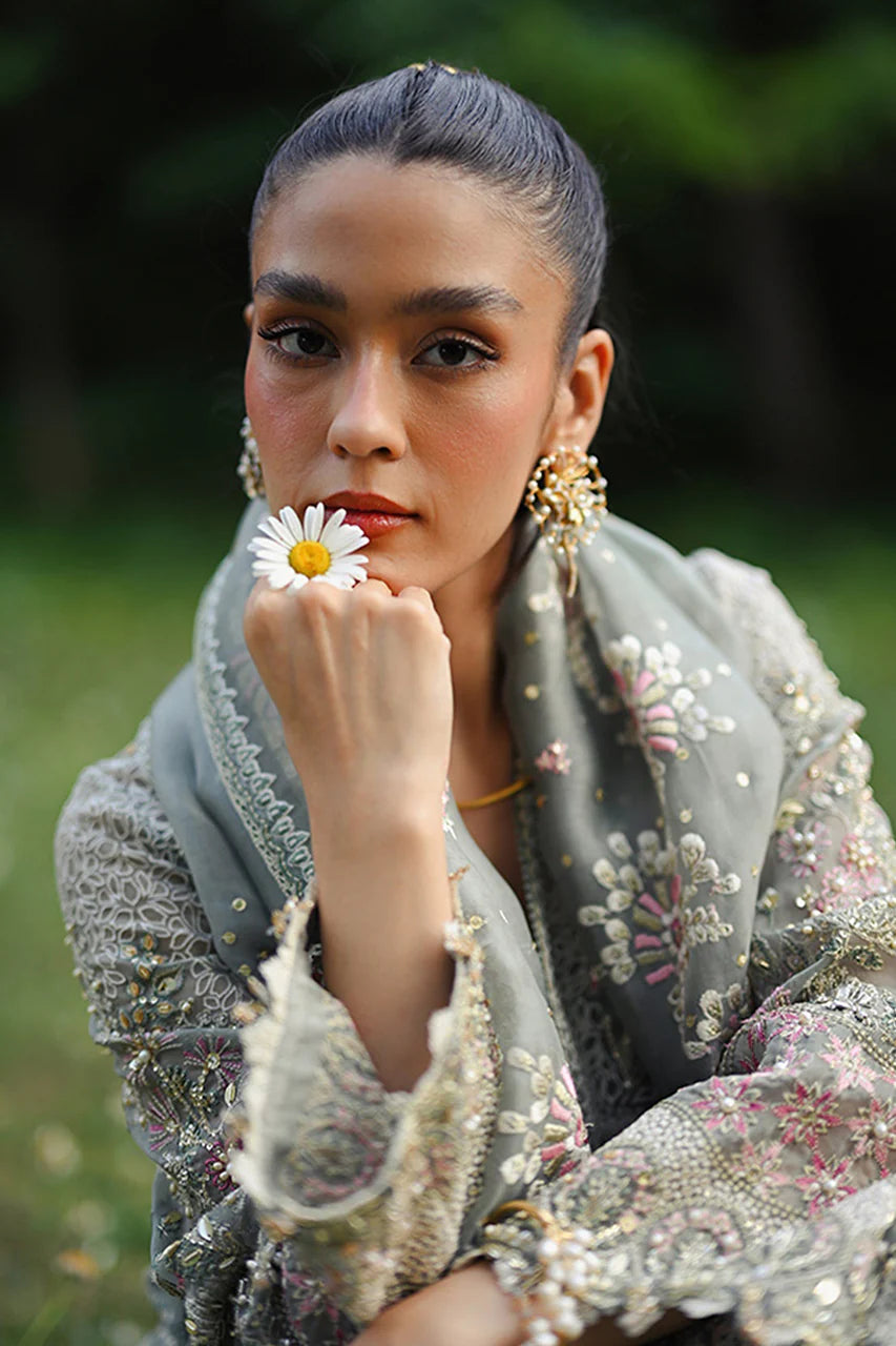 - Organza dupatta, with embroidered borders and sequins details, styled with tassels.