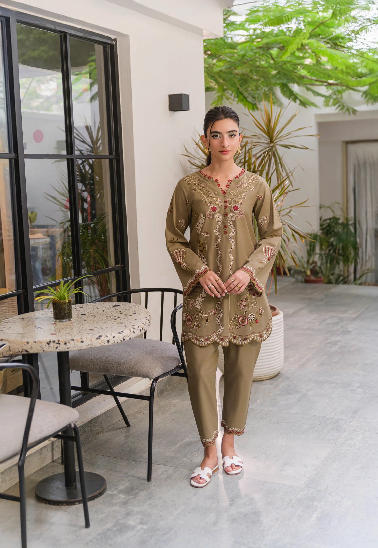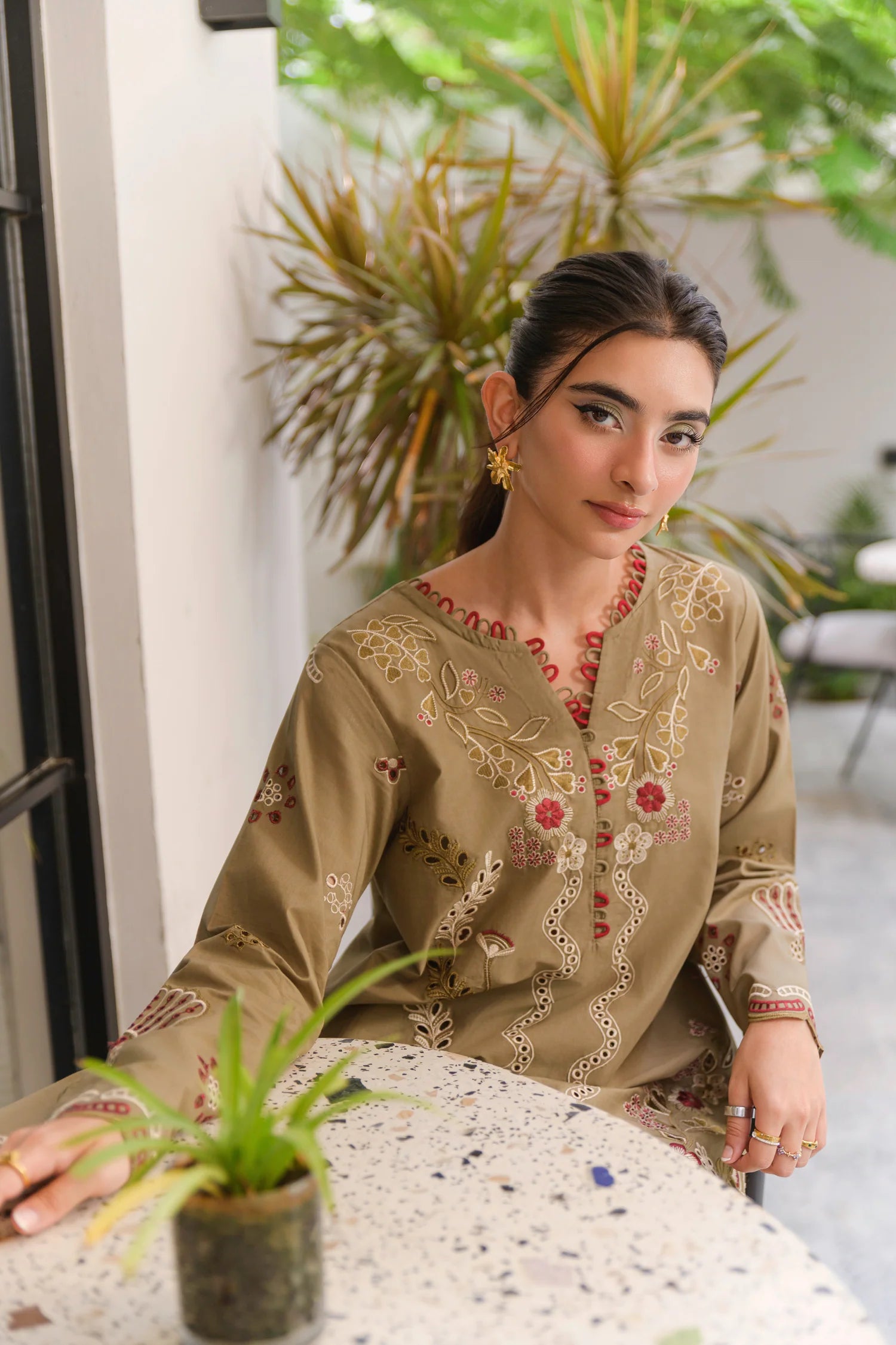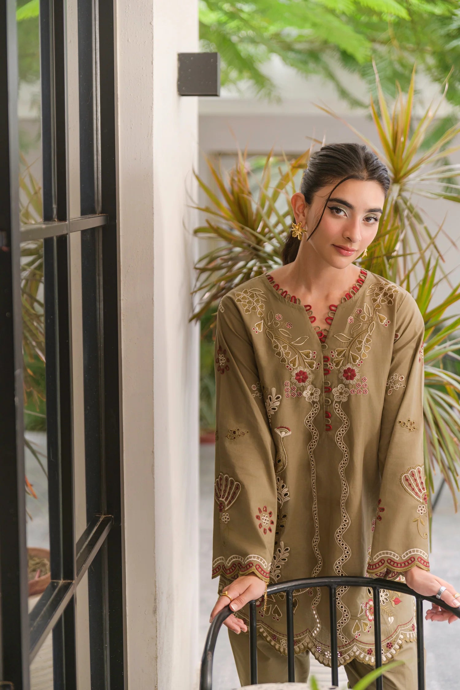 This collection offers a diverse range of styles, from flowing long silhouettes to playful short cuts, paired with both skinny shalwars and culottes. 🎀👗The collection showcases a spectrum of colors, embracing the freshness of summer and transitioning into the rich tones of autumn. Each piece is meticulously crafted with detailed machine work, ensuring perfection in every stitch. The fabric used is premium pure cotton lawn. ⭐