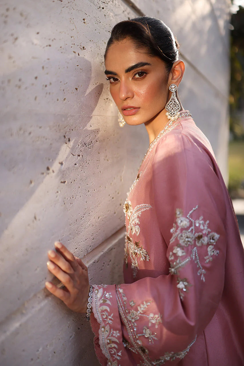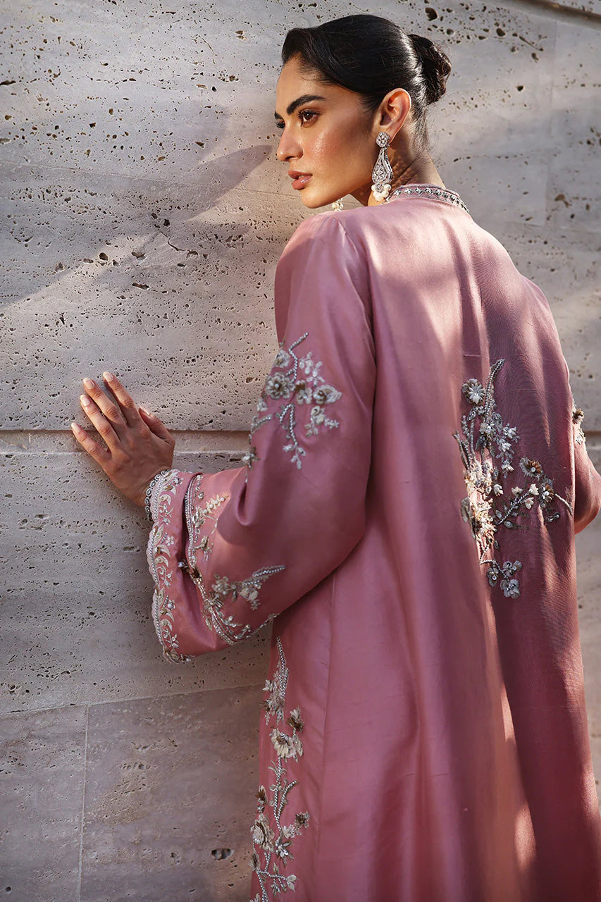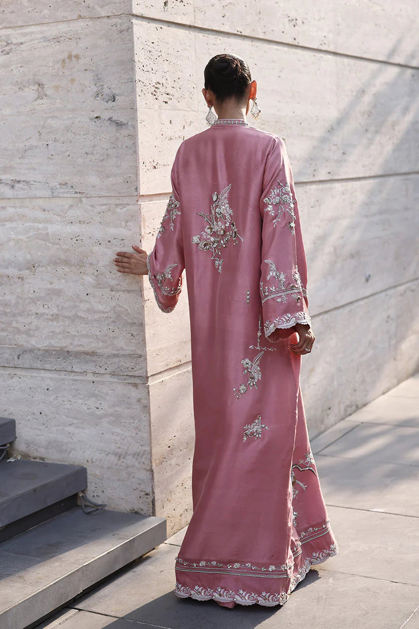 A solid khaddi silk shella completes the look, allowing the embroidery’s rhythm to linger. The result is a composition that sparkles gently, shaped by softness, detail, and flow.