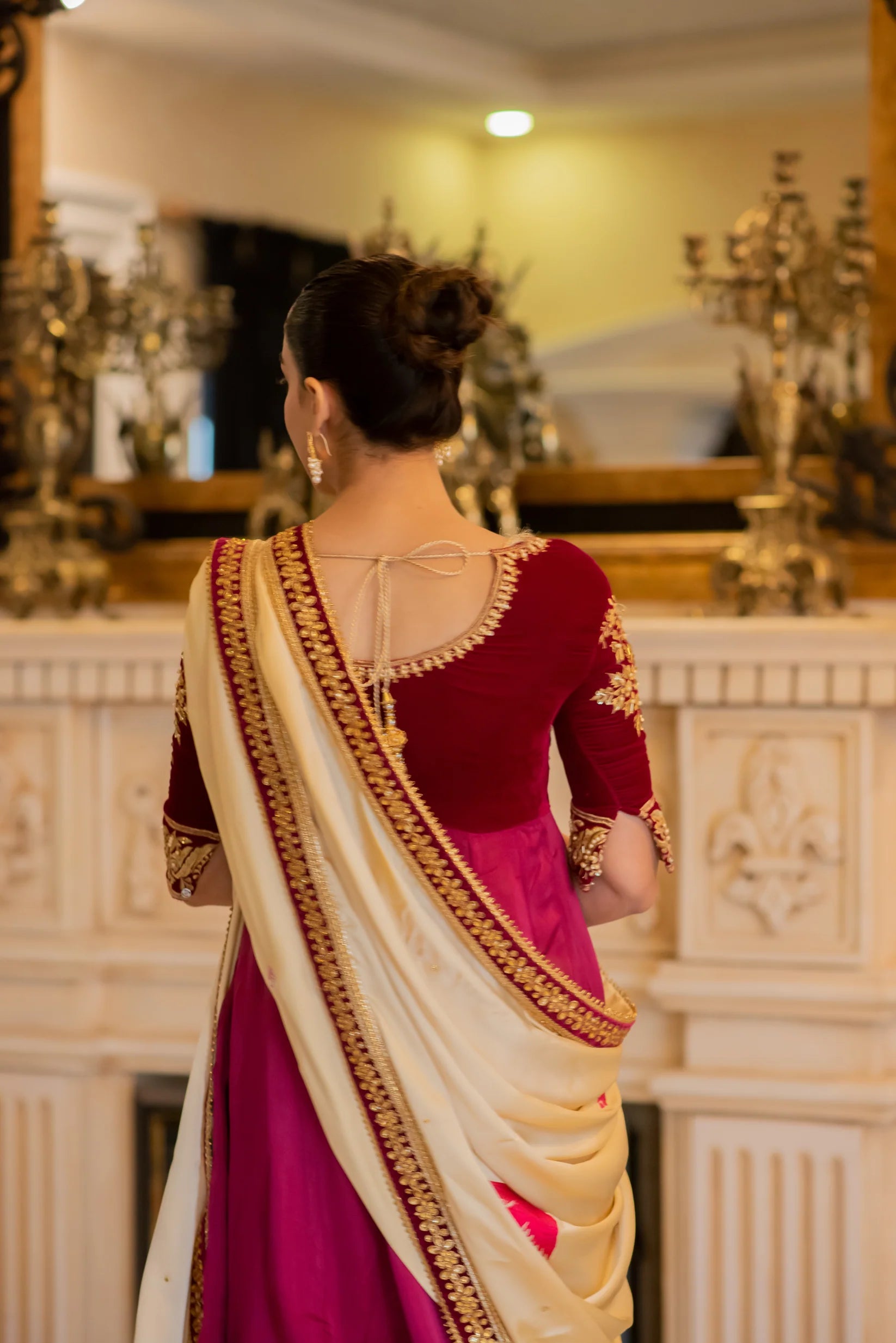 threadwork and pearl embellishments on the neckline, back and fully embroidered sleeves,