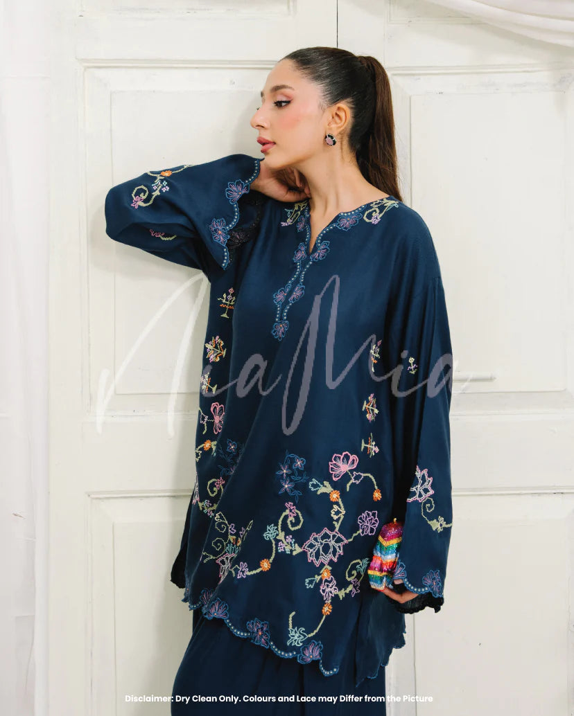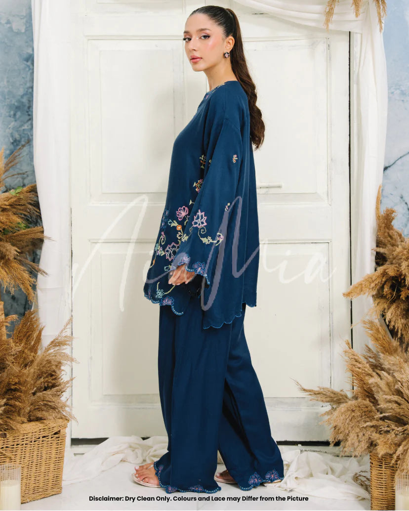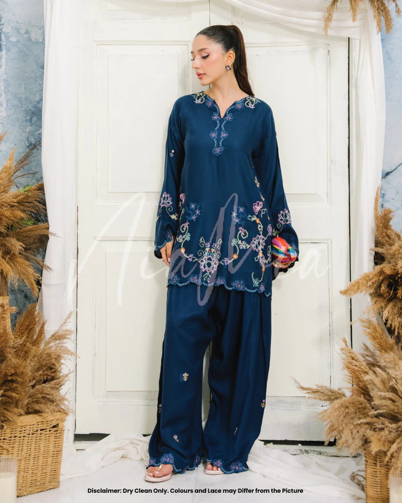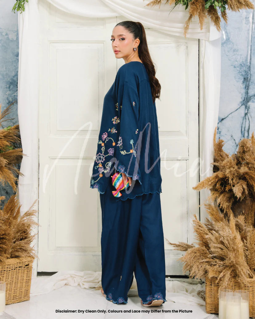 Bubblegum is a minimal embroidered set designed for effortless winter wear. Crafted in soft pashmina, the shirt features subtle multi embroidery. Paired with a farshi shalwar, the silhouette feels relaxed, graceful, and easy to wear.