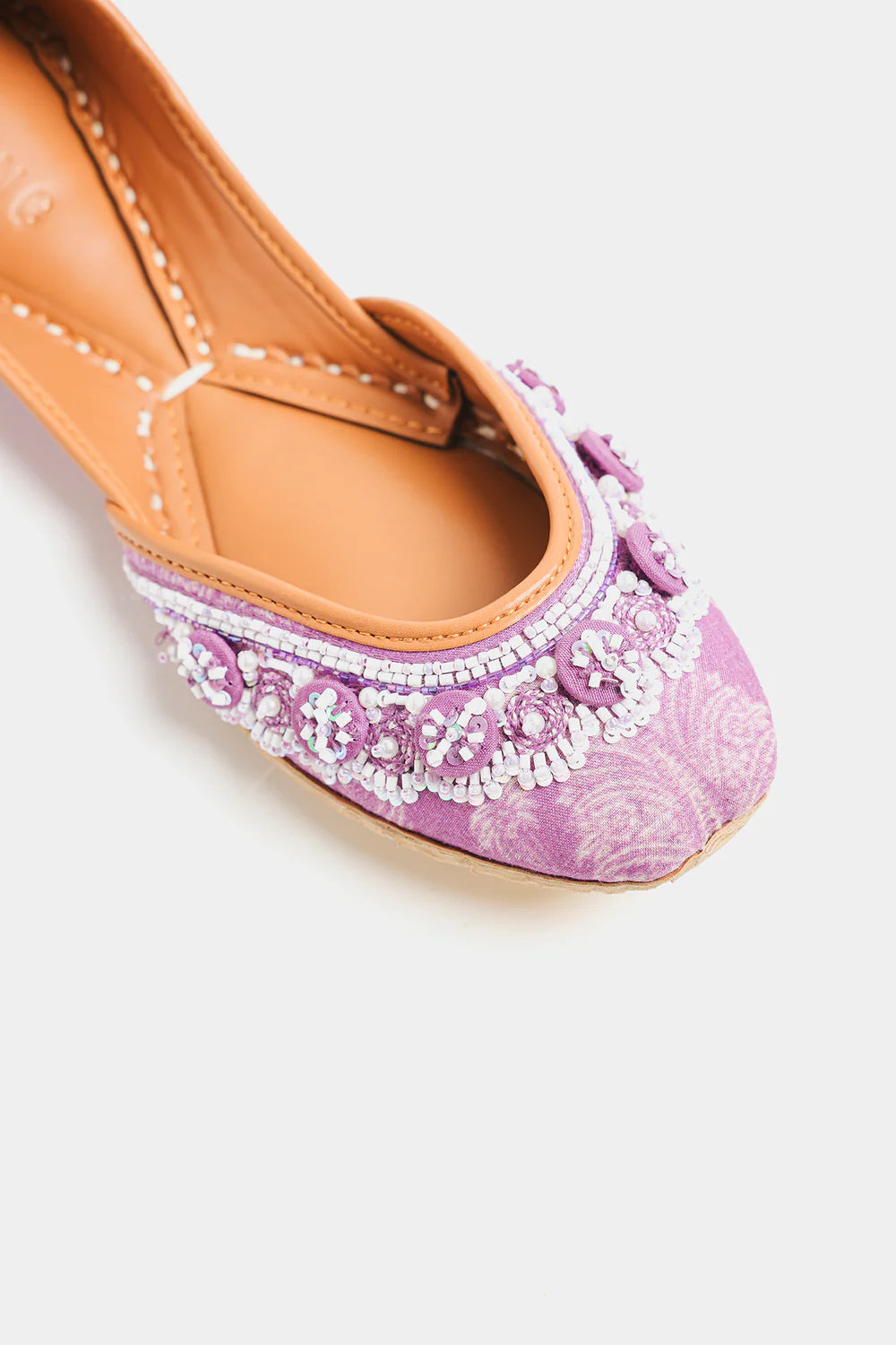 Discover regal charm with these stunning pink khussas. Embellished with intricate white bead and sequin work, they are perfect for adding a majestic touch to your traditional attire.