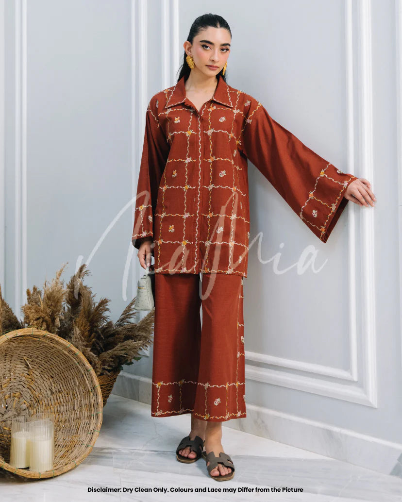 In a rich autumn tone, Cinnamon brings warmth and character to your wardrobe. Made from premium linen and adorned with intricate contrast embroidery, it combines refined craftsmanship with modern ease — an ideal choice for the season’s polished yet relaxed aesthetic.