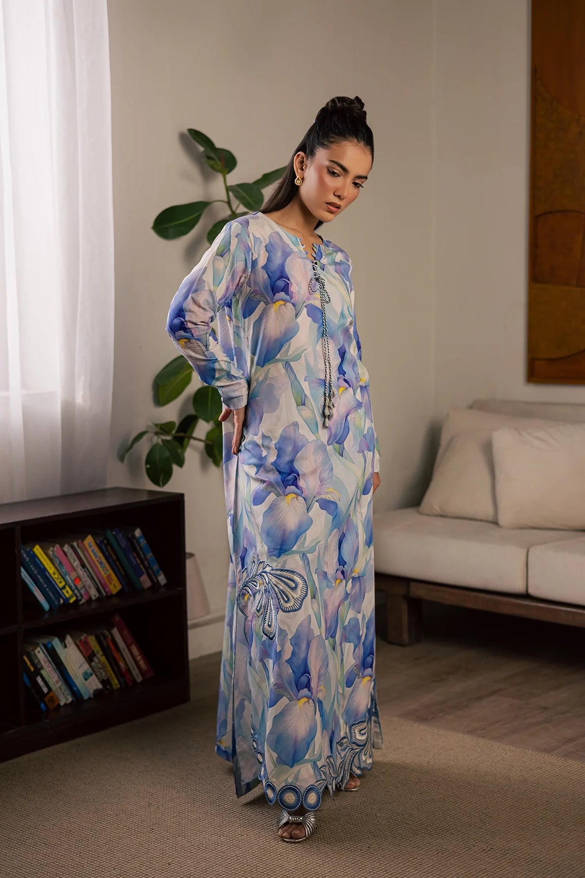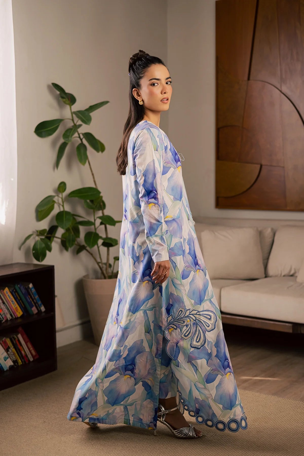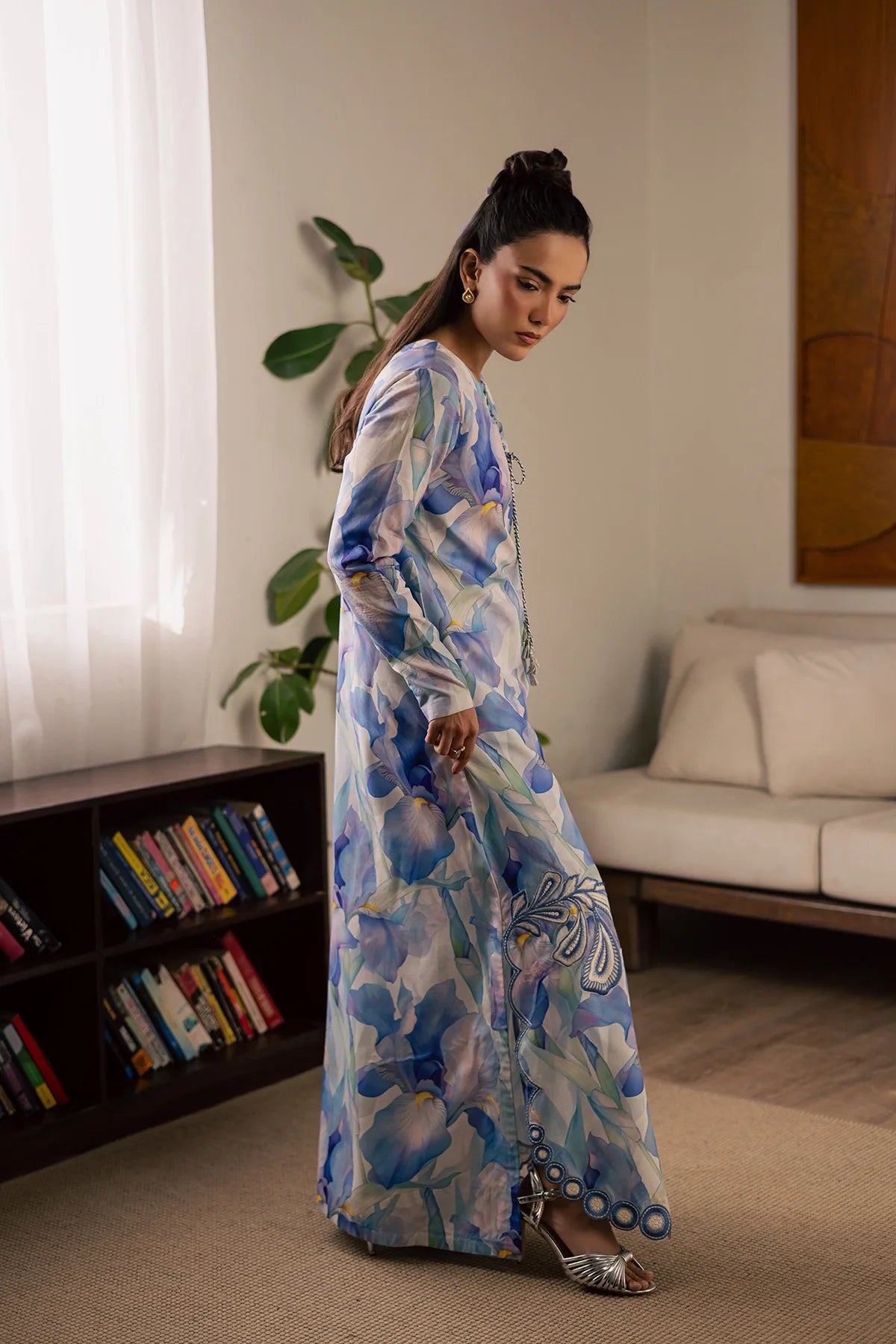 Embroidered and printed lawn silk shirt paired with printed lawn slik trouser.