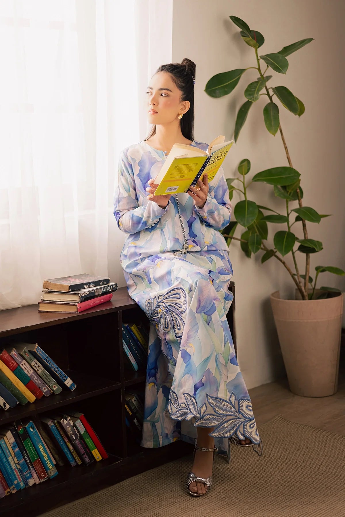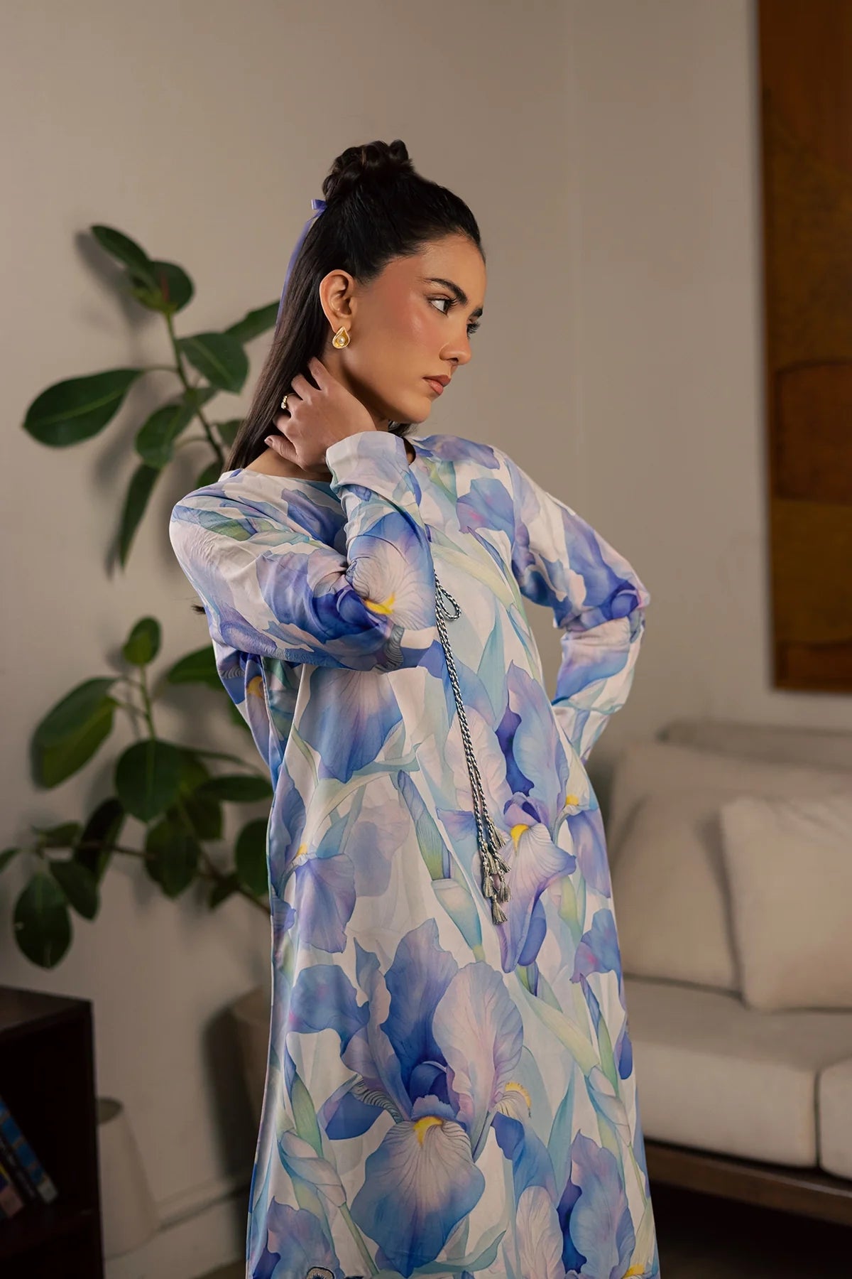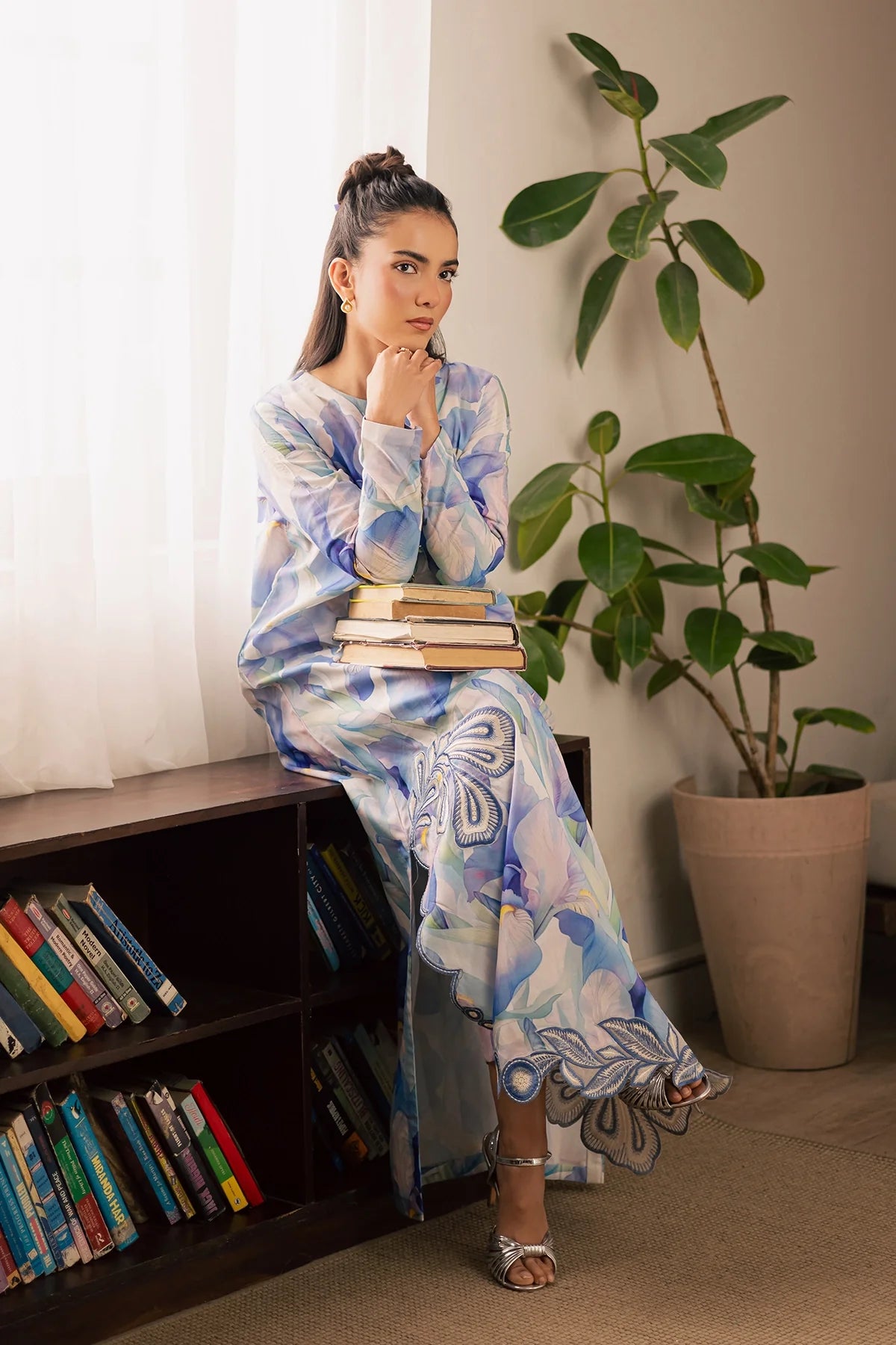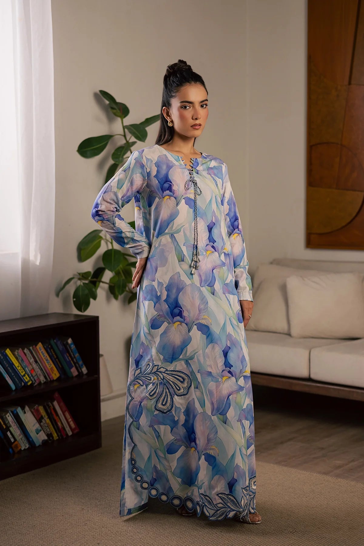 Embroidered and printed lawn silk shirt paired with printed lawn slik trouser.