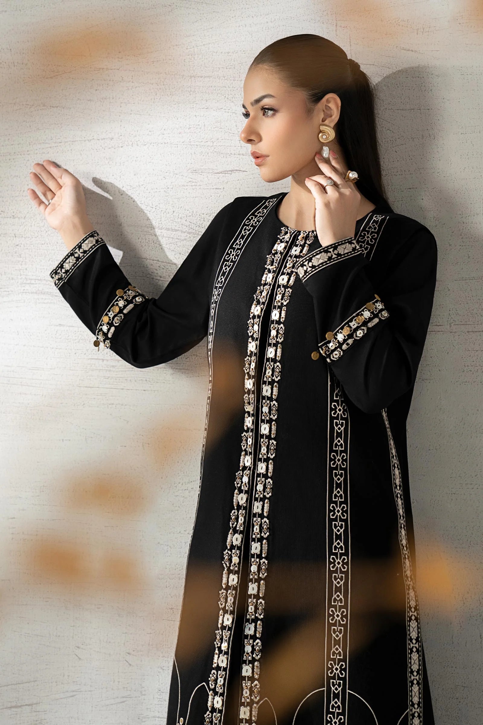 Embroidered Hand-Embellished Front Open Slit