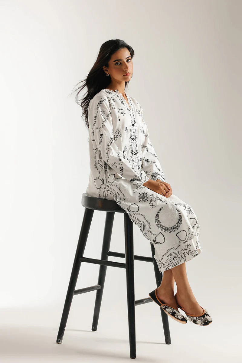 Step into classic sophistication with this beautifully embroidered suit. The crisp white fabric provides the perfect canvas for the intricate black embroidery, featuring elegant floral and vine patterns that flow across the shirt. The delicate lace trim along the neckline and cuffs adds a touch of refined femininity. The ensemble is completed with matching white trouser, creating a timeless and cohesive look. This suit is an ideal choice for a graceful, polished aesthetic, perfect for both formal and semi-formal occasions.