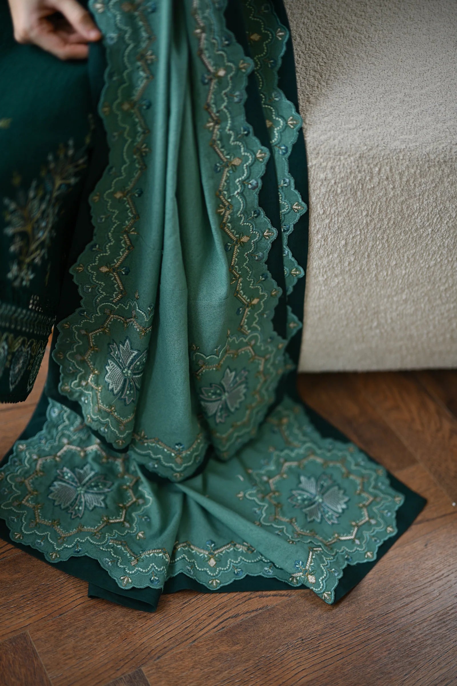 EMERALD GREEN LUXURY EMBROIDERED KARANDI SET (NEL-25623) | ZAIB