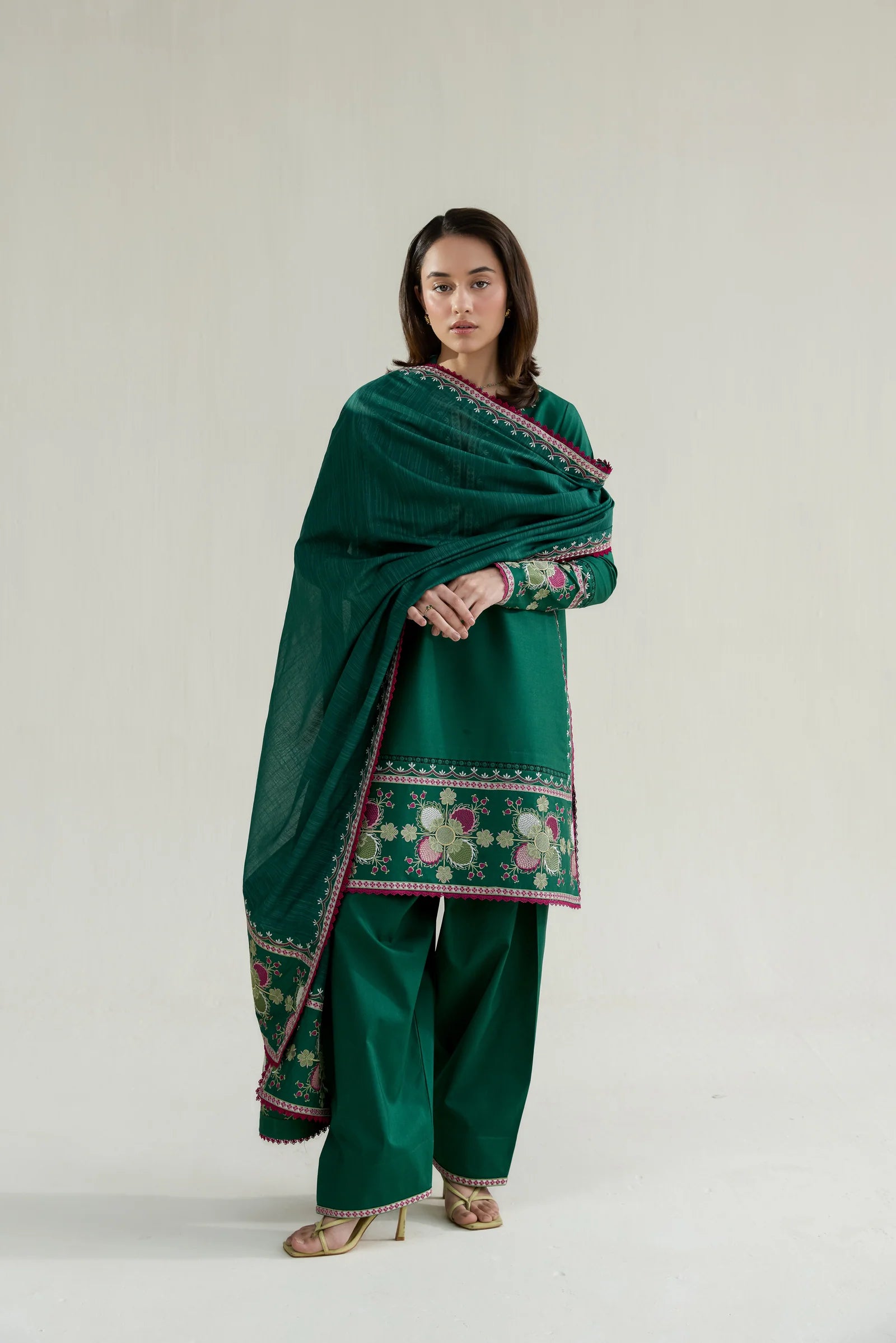 EMERALD GREEN LUXURY EMBROIDERED LAWN 3PCS SET (NPA3-26413) | RAMADAN EDIT '26 | ZAIB