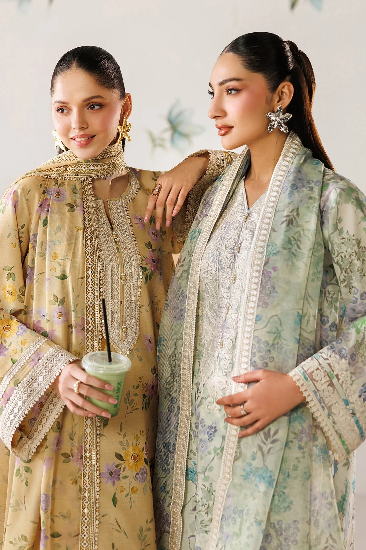EMBROIDERED LAWN UF-4417 delivers a refined unstitched ensemble combining contemporary digital printing with traditional embroidery artistry. The collection features a digitally printed lawn shirt and trouser as the core foundation, complemented by strategically placed embroidered organza accents. A distinctive neckline patch establishes the focal point, while coordinated sleeve and trouser borders provide cohesive detailing throughout the silhouette. Substantial front and back embroidered organza panels add dimensional sophistication to the overall composition. The ensemble concludes with a digital printed cotton net dupatta, finished with an elaborate embroidered organza border that extends the design narrative. This thoughtfully constructed three-piece set exemplifies contemporary lawn fashion with meticulous attention to embroidery placement and quality craftsmanship.