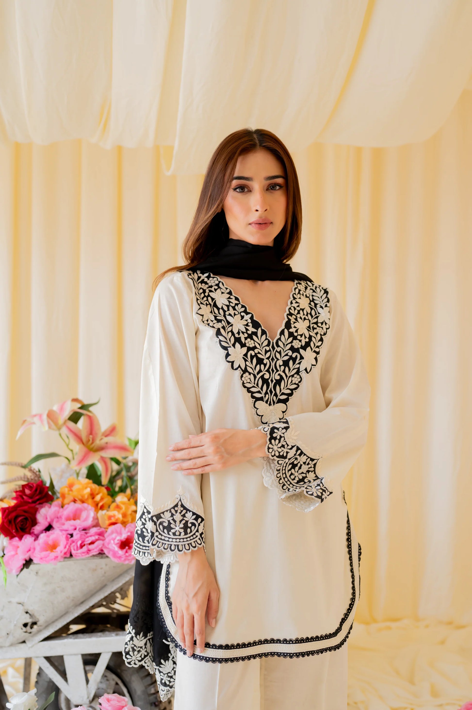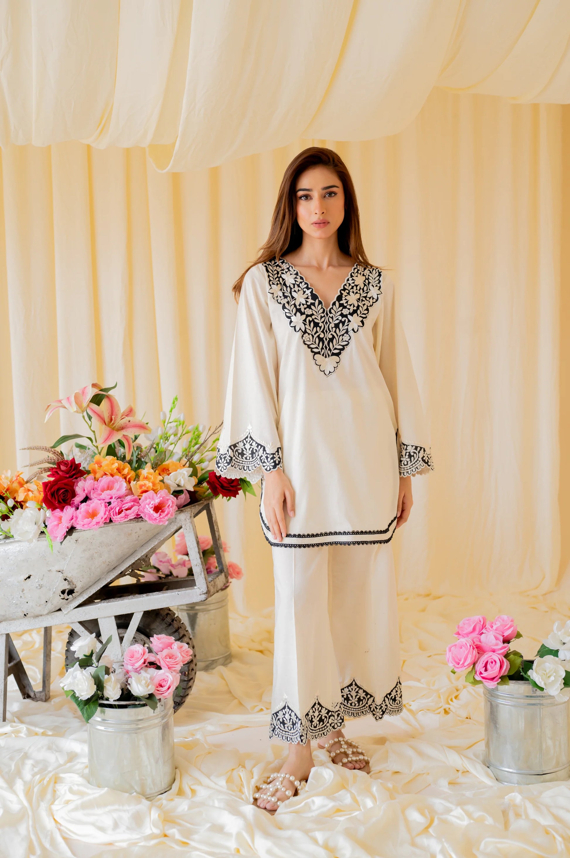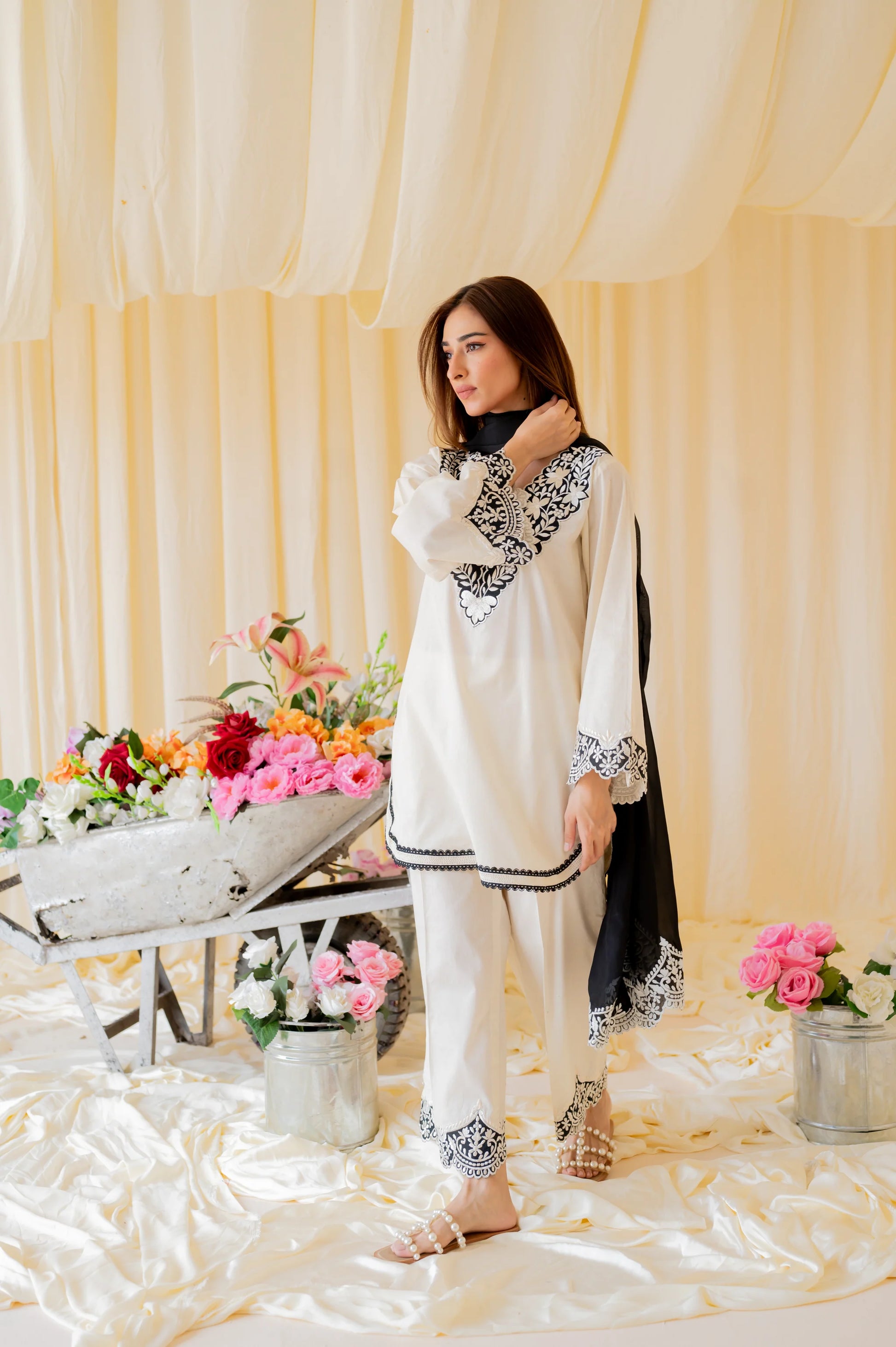The Eva Set- A classic black and white set with breathtaking details that you will want to wear again and again.